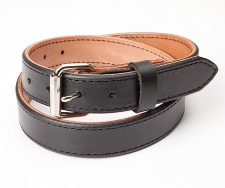 The leather looks great — suitable for the office or a nice restaurant. It’s thinner than the BullBelt, so it didn’t feel excessively rigid around my waist when I was wearing slacks. I sized up 2 inches above my normal pant size.