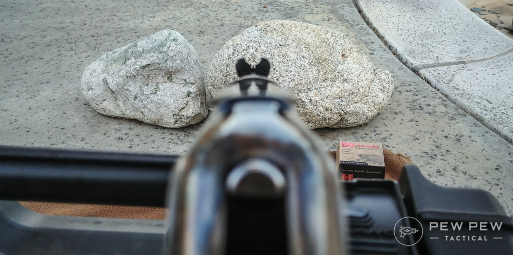 Out of the box, the rifle came basically zeroed, depending on what ammo I used. I also tested everything from 158gr .357 magnum down to 90gr .38spl, every single one round through the rifle without a hitch. Zero malfunctions, zero problems.