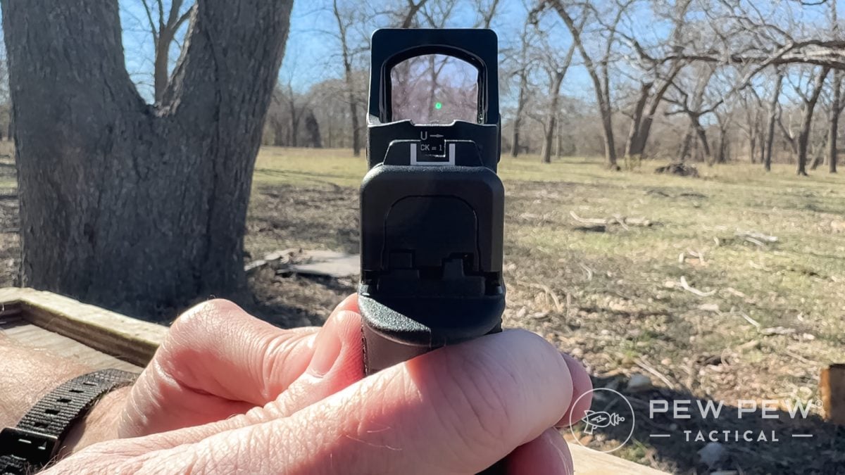Optics sit pretty low on the slide, though not low enough to co-witness the standard height sights. Plus, Glock includes three of the polymer plates in the box, giving you choices.