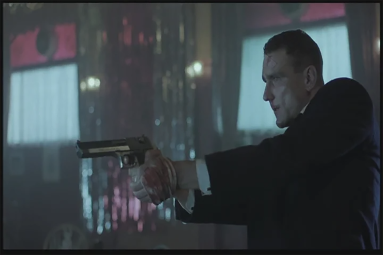 Early in the film, he even lays it down and says, “…the fact that you’ve got ‘Replica’ written down the side of your guns…And the fact that I’ve got Desert Eagle point five O written on the side of mine…”
