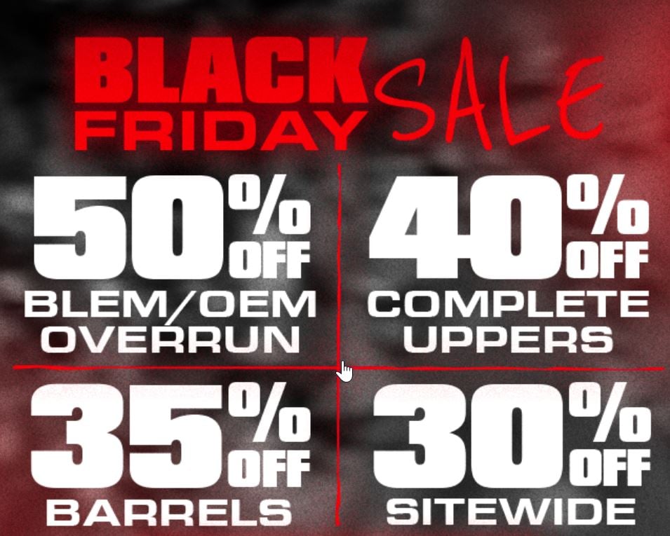 Km tactical also has some sweet deals! 7.5 or 10.5 Black Friday Complete Upper Special w/ Red Dot For only $200.