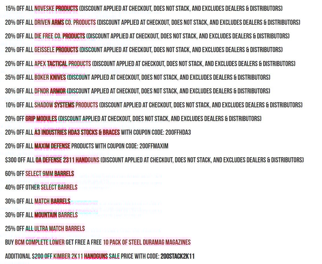 Don't forget about "Wing Tactical" and "Right to Bear Arms" for Black Friday deals.